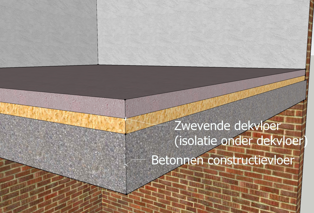 - Als de bouwer zorgt voor een zwevende dekvloer met een zeer goede geluidsisolatie hoeft de woonconsument in het geheel niet meer te letten op de geluidswering van zijn harde vloerbedekking.
