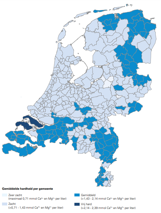 In Nederland is het drinkwater over het algemeen niet te hard (zie afbeelding 1). Daarom is een niet nodig.